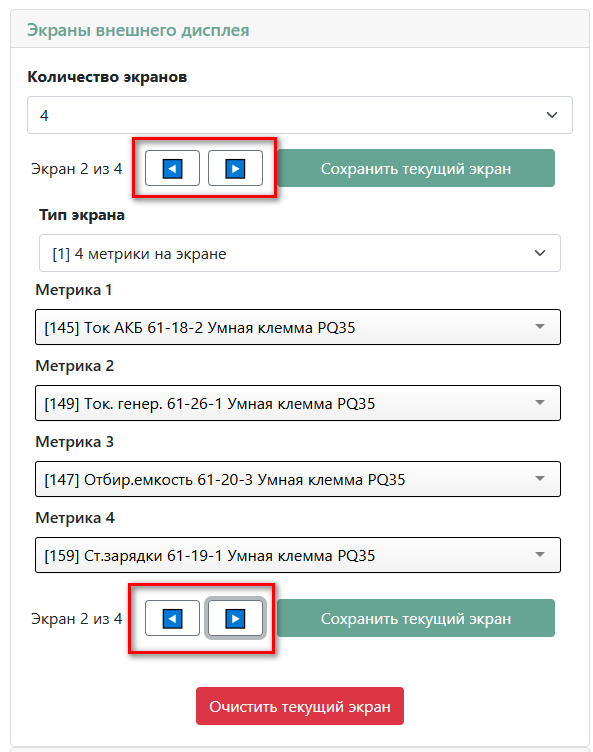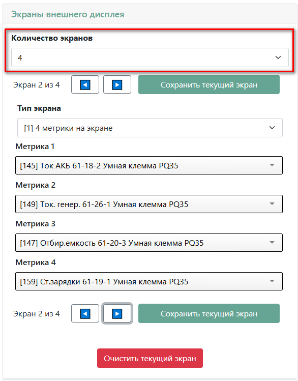 Теперь можно переходить к настройкам самих экранов. Выбираем кнопками ВЛЕВО-ВПРАВО номер экрана, который будем настраивать.