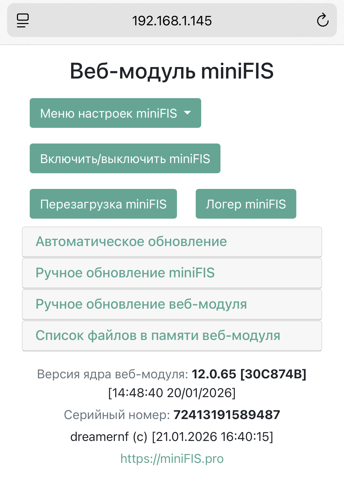 В данной инструкции описан процесс обновлений веб-модуля минифисов выпущенных с декабря 2025 либо минифисов, которые прошли миграцию на новую версию (Миграция на новую версию веб-модуля.